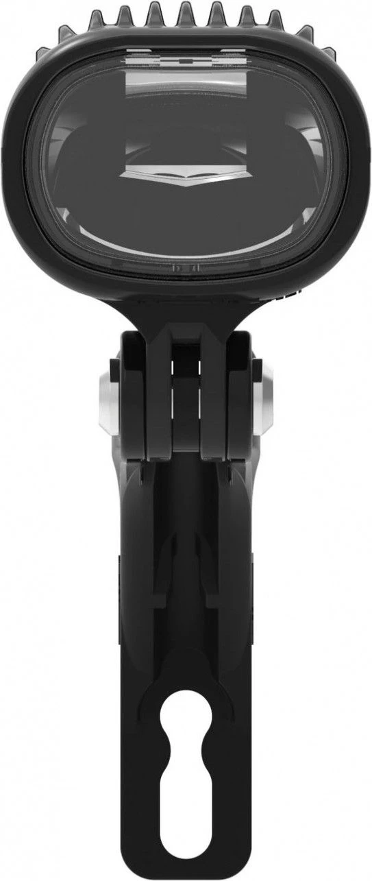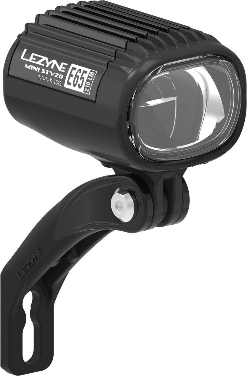 Optimized StVZO lens (German standard) with diffuse beam and long range. The always-on high-performance LED delivers 210 lumens (65 Lux). Composite Matrix body with machined aluminum top plate to optimize heat dissipation. Compatible with 6 – 12v input electric motors, 4W easily plugs into batteries from major manufacturers, including Bosch, Shimano and Yamaha. Includes a Composite Matrix fork support that perfectly hides the included 130 cm long power cable.