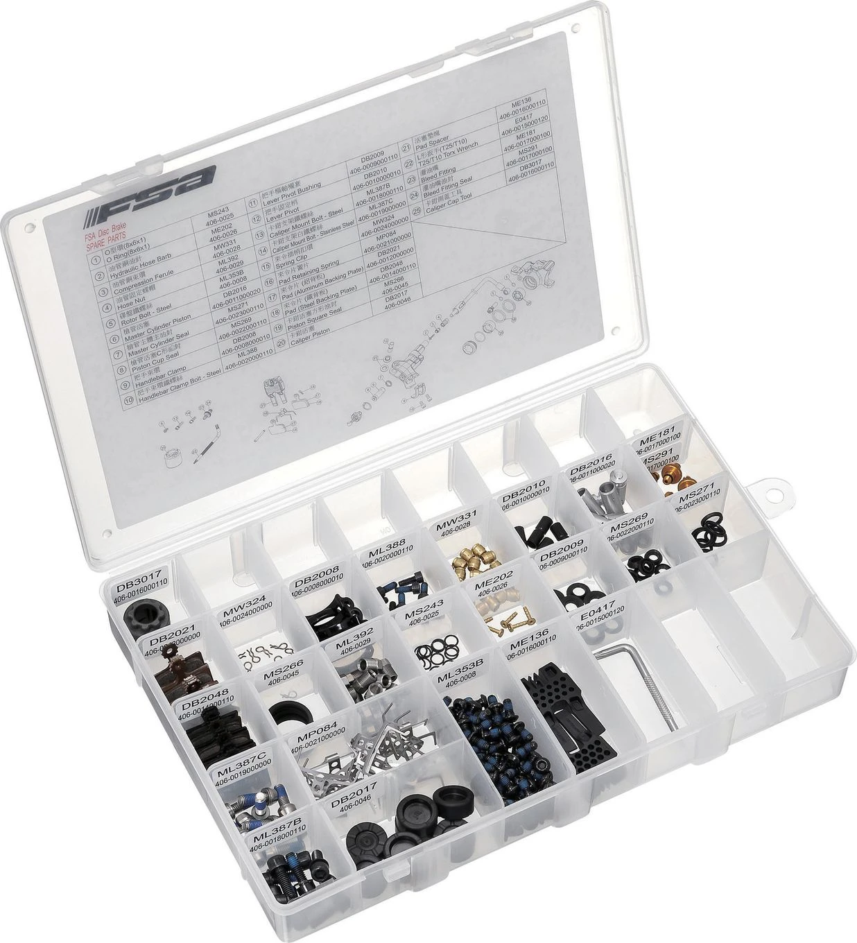 Référence : 406-0034 / Disc Brake Small Parts Kit Disc Brake Small Parts Kit Includes Plastic Case DB028 Total pc count 377